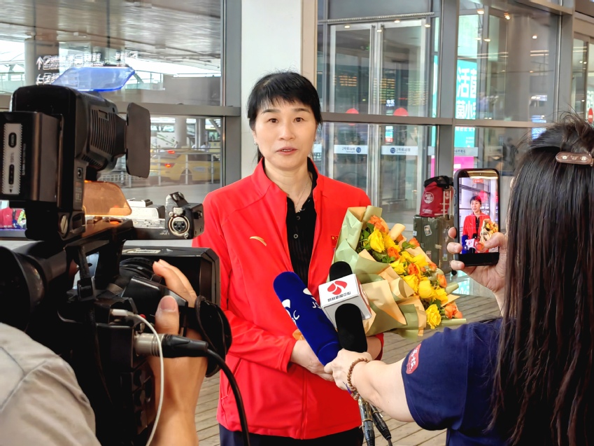 管理保障团队代表、体操学院院长梁琴接受媒体采访