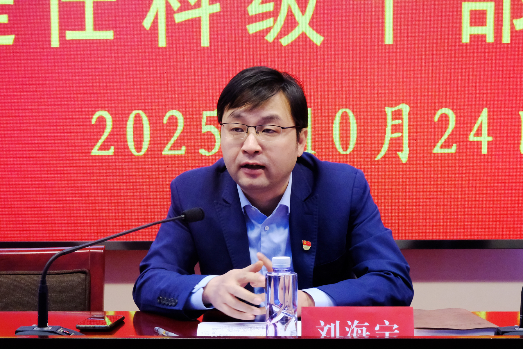 为贯彻落实习近平总书记关于干部队伍建设的系列重要论述精神,全面落实二十届中央纪委四次全会提出的“加强‘一把手’、年轻干部、新提拔干部、关键岗位干部等重点群体纪律学习培训”部署要求,10月24日,我校召开2025年新提任科级干部警示教育大会。校党委常委、纪委书记、派驻监察专员刘海宁出席会议并讲话。校党委常委、党委组织部部长殷怀刚主持会议。全体2025年新提任科级干部参加会议。