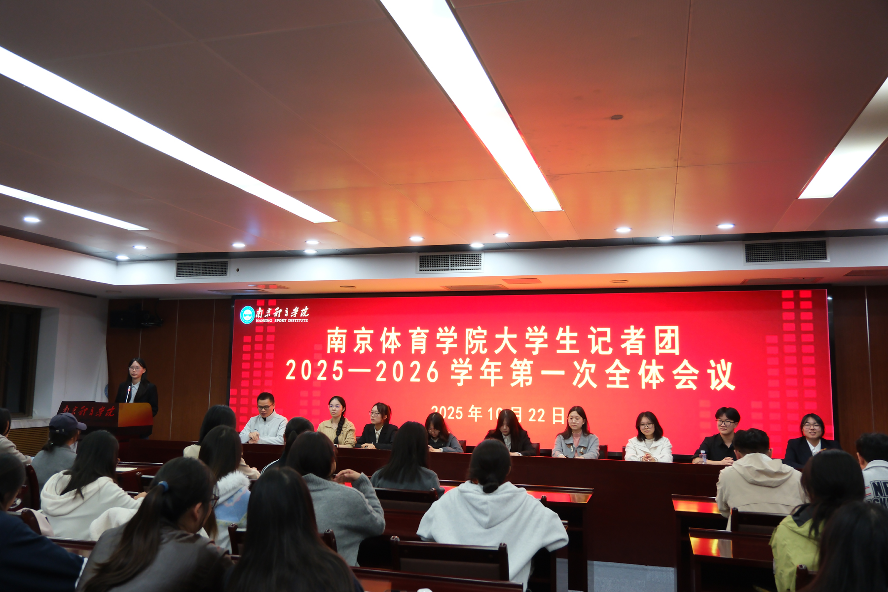 南京体育学院大学生记者团2025-2026学年第一次全体会议10月22日晚在灵谷寺校区召开。