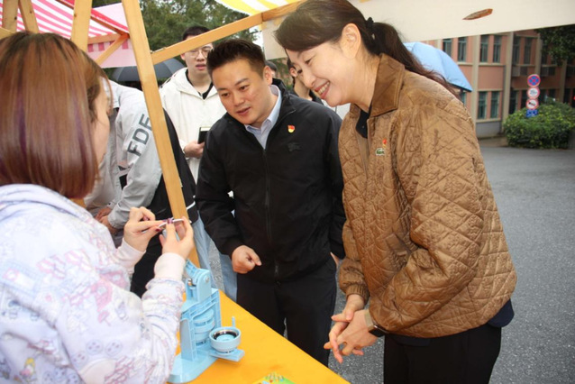 领导们还参观了学生社团摊位,仔细询问活动情况,给予指导意见,并与同学们一起参与游戏互动。