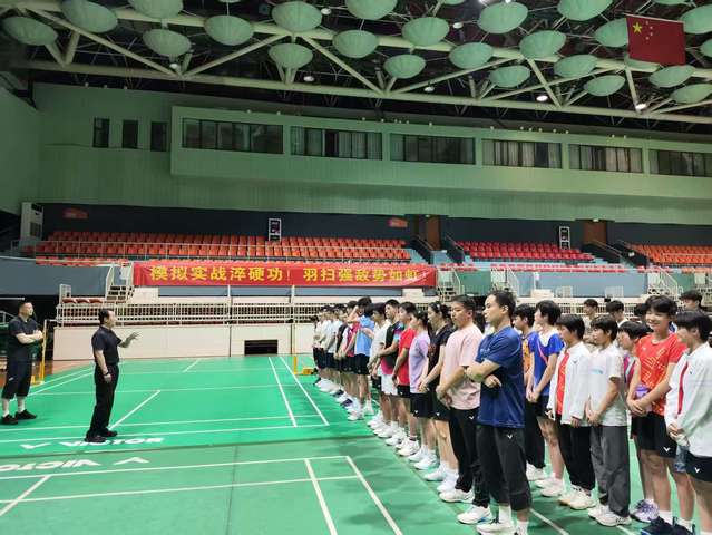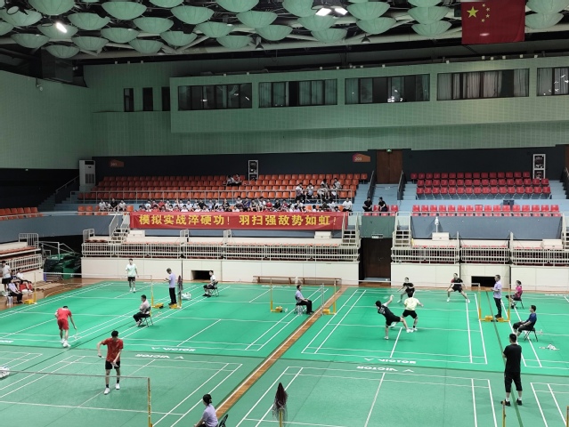 为深入贯彻落实《南京体育学院迎战十五届全运会百日会战活动方案》精神,全面检验预赛后小周期训练成果,进一步提升决赛冲刺的实战对抗性,以赛促练、以练促战,全面提升队伍的竞技状态。10月8日下午,乒羽学院羽毛球队组织了全运决赛前第二次队内实战对抗赛。本次对抗赛全体在校运动员、教练员及复合型保障团队全员参与。校党委常委、副校长刘健,运动康复医院院长王家祥,体育科学研究院院长秦学林,训练处副处长叶蓁、宋凯及训练督导组专家任大新、袁紫娟、靳鲁芳、张继芳等到现场观摩指导。
