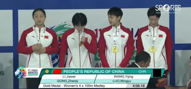 右2为我校游泳运动员王艺静