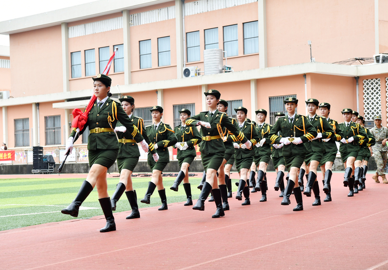 上午9时,大会在庄严的国歌声中拉开帷幕。国旗班女兵迈着矫健的步伐,护卫五星红旗来到旗杆前。升旗手振臂一挥,五星红旗冉冉升起。施训官兵和全体学员面向国旗敬礼,其他人员起立面向国旗行注目礼。