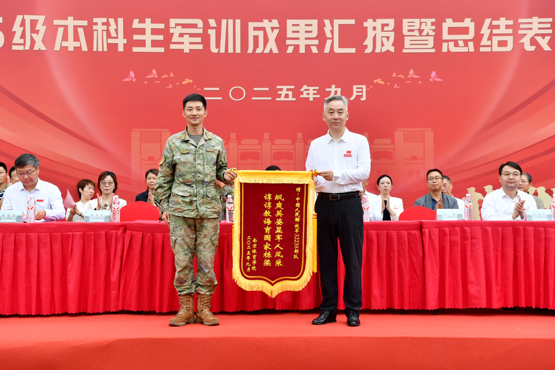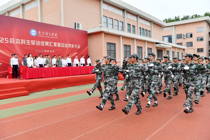 南京体育学院2025级本科生军训成果汇报暨表彰大会在灵谷寺校区教学田径场举行