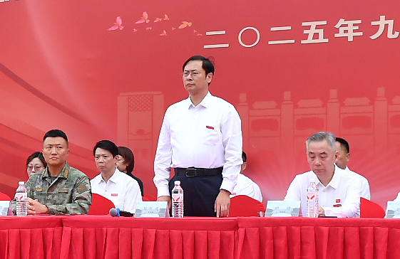 南京体育学院校长吴兵成宣布军训成果汇报开始