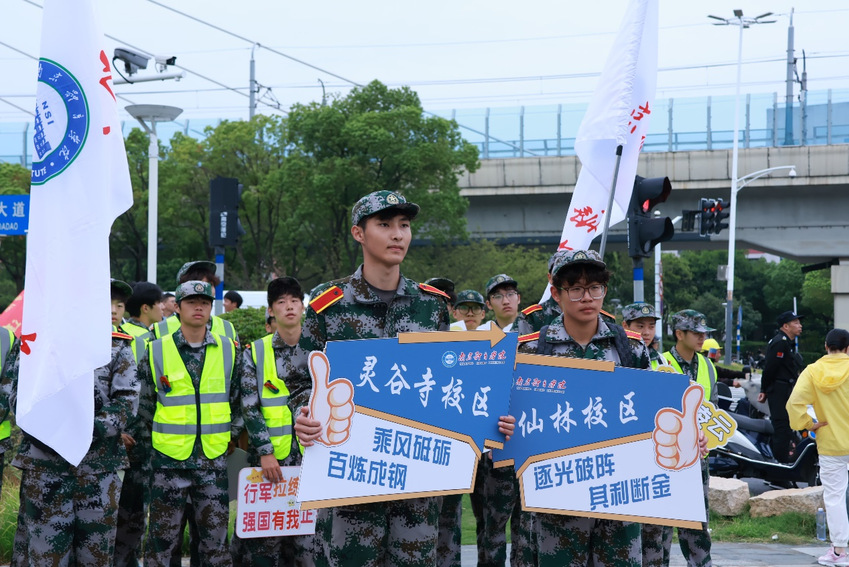 经过近两个小时的行进,两校区同学成功于仙鹤门会合。军训拉练里程共15公里,灵谷寺校区与仙林校区一同进行。灵谷寺校区新生由灵谷寺校区南西门出发,经灵谷寺路、紫金山东路、环陵路、仙林大道至仙鹤门返回灵谷寺校区西门;仙林校区新生由仙林校区西门出发,经元化路、仙林大道至仙鹤门返回仙林校区西门,两校区同学在仙鹤门汇合并合影后各自原路返回。