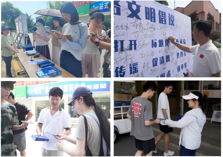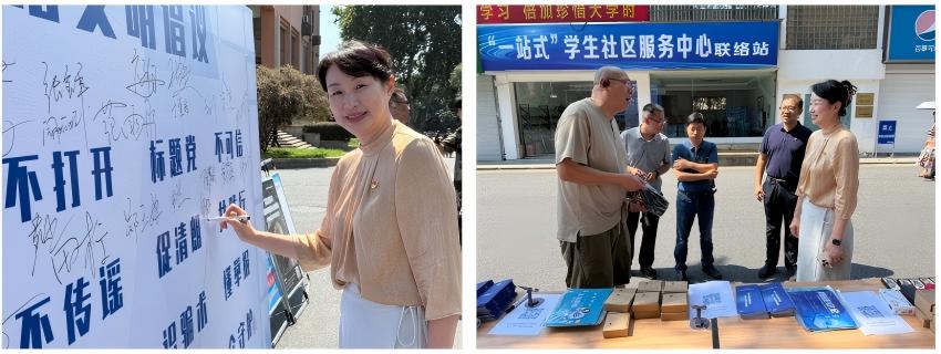 学校上下坚决贯彻习近平总书记关于网络强国的重要思想和关于教育的重要论述,校党委高度关注学校网络安全工作与网络育人成效。活动当日,校党委常委、副校长鲍勤到现场指导工作,带头签署《网络文明倡议》,并与工作人员一同向师生普及网络安全知识,强调要扩大网络安全宣传覆盖面,增强网络安全防护意识。