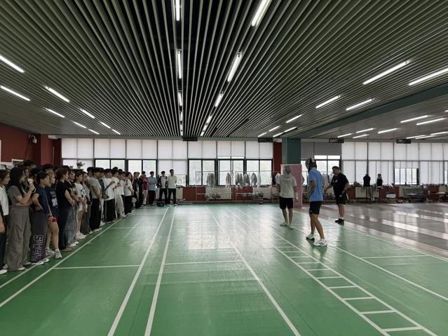 在竞技体育学院,各运动队选派领队或教练员担任讲解员,向新生介绍了运动队的发展历史、赛事成绩及日常训练体系。当前正值第十五届全运会备战关键期,新生们近距离观摩了运动员的专项训练,直观体会到“专业理论+竞技实践”的深度融合,认识到“学训融合”不仅是南体的办学特色,更是办学优势。讲解员还结合自身经历,鼓励新生在未来的学习中主动打破理论与实践的壁垒,将课堂所学融入专业实践,努力成长为兼具扎实学识与过硬技能的全面发展型人才。