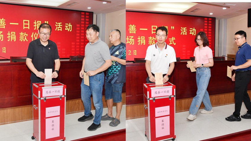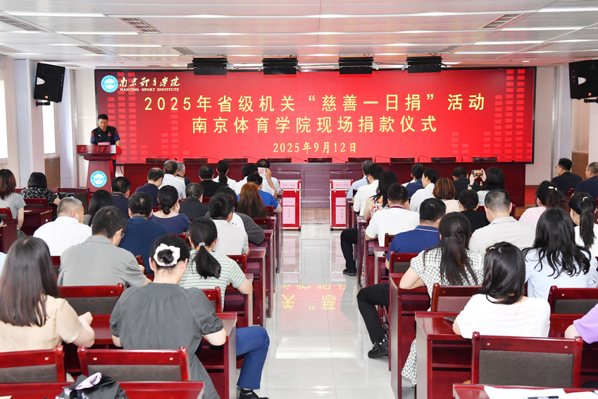 为深入学习贯彻习近平总书记关于慈善工作的重要论述,认真践行以人民为中心的发展思想,传承弘扬慈善文化,9月12日中午,2025年省级机关“慈善一日捐”活动南京体育学院现场捐款仪式在灵谷寺校区101会议室举行。党委书记刘红明、校长吴兵成和校领导兰亚明、鲍勤、刘健、刘海宁、王猛及一百多名机关干部参加现场捐款活动。