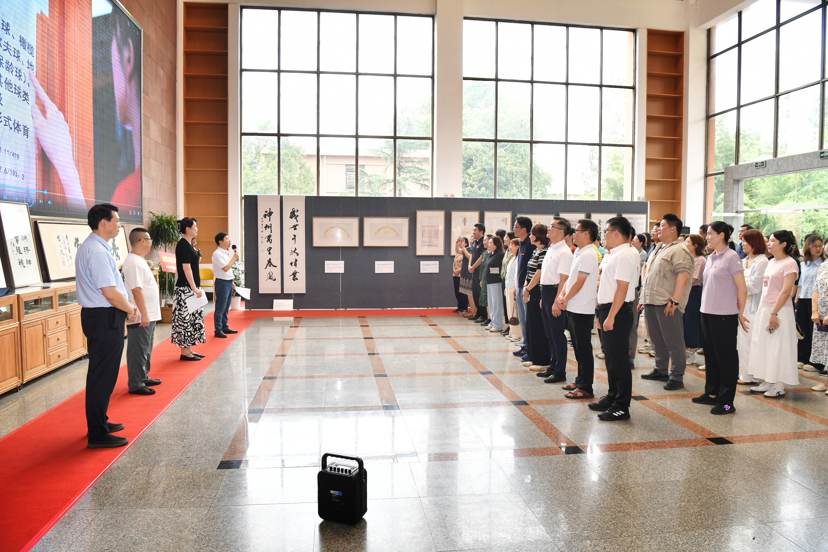 为纪念抗战胜利暨世界反法西斯战争胜利80周年,营造浓厚的校园爱国主义文化氛围,教育引领我校大学生、运动员学习革命先烈奋斗牺牲精神,激发勤学苦练勇攀高峰的热情,学校图书馆与工会联合举办抗日战争胜利暨世界反法西斯战争胜利80周年主题图书展,以及“笔书强国梦·墨展体育魂”中华体育精神书法作品展。校党委常委、副校长鲍勤出席活动并讲话,校党委常委、党委宣传部、统战部部长许立俊,以及相关职能部门、二级学院领导、师生代表50余人参加活动。活动由图书馆馆长李明华主持。