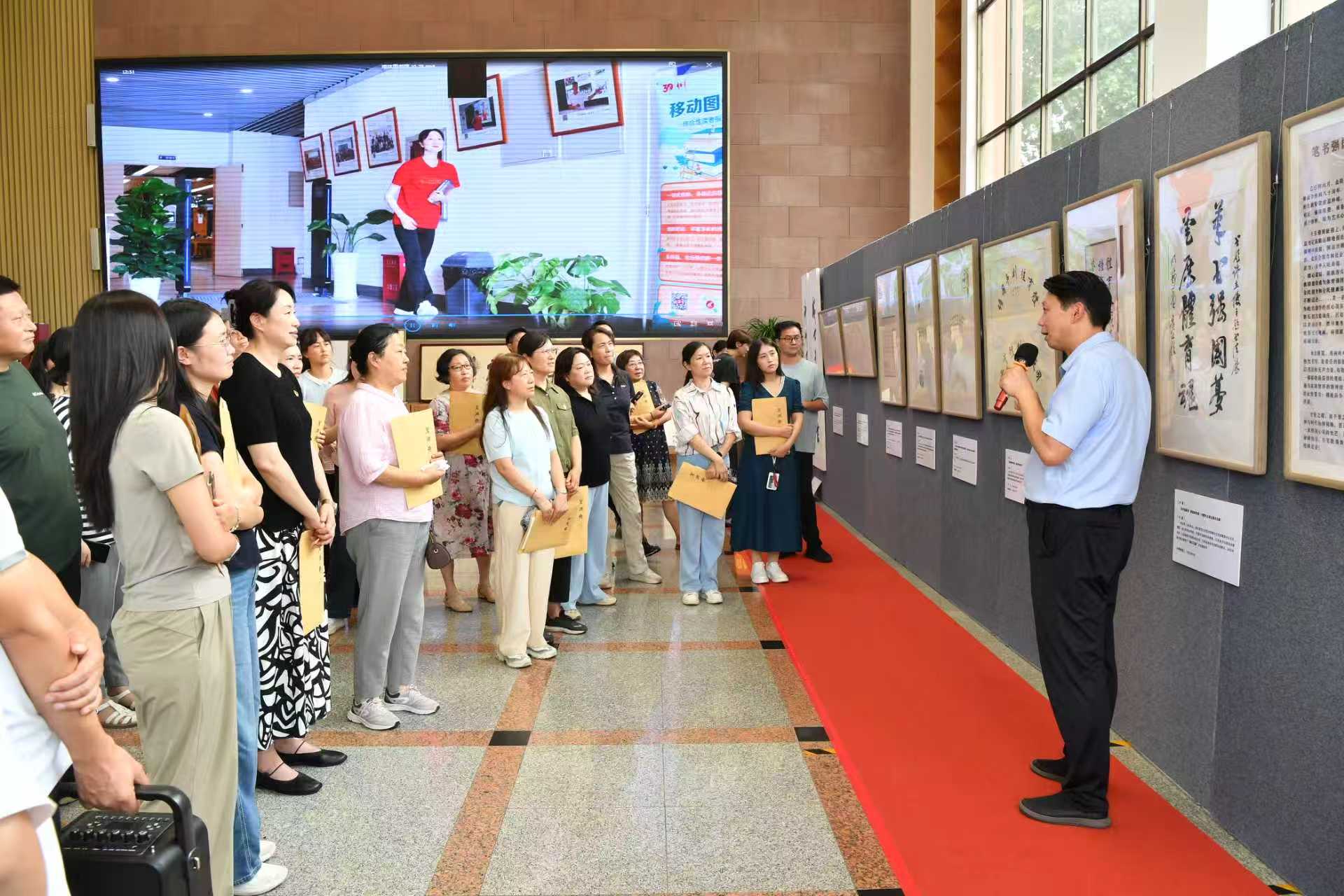 校党委常委、党委宣传部、统战部部长许立俊作书法展的讲解和说明
