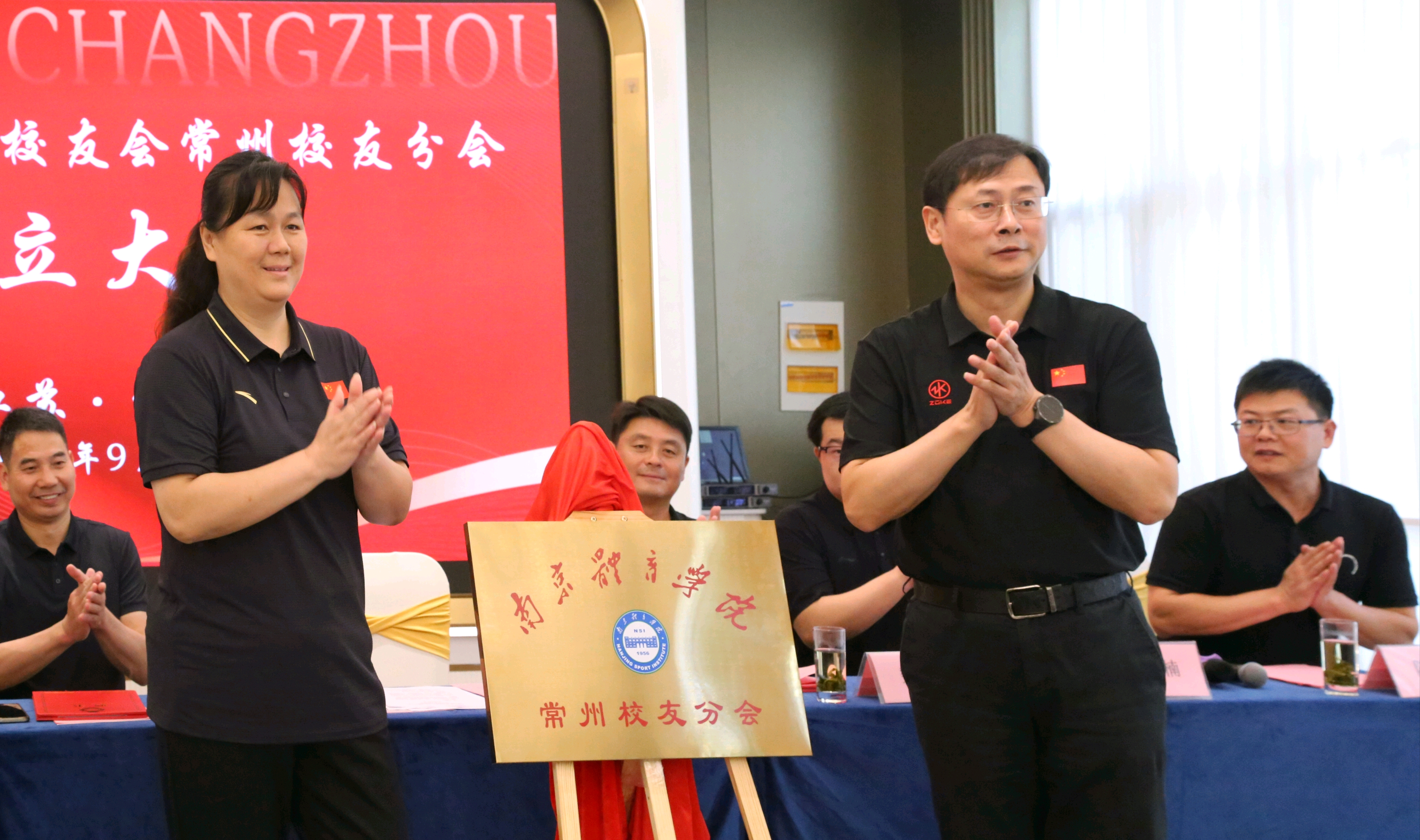 吴兵成与朱亚男一起为常州校友分会揭牌