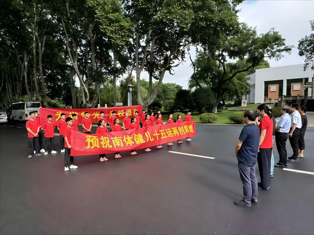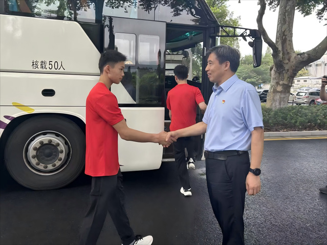 随后,校领导刘红明、刘健、王猛与体操队全体出征人员一一握手告别,并挥手目送满载出征将士的车辆驶出校门。