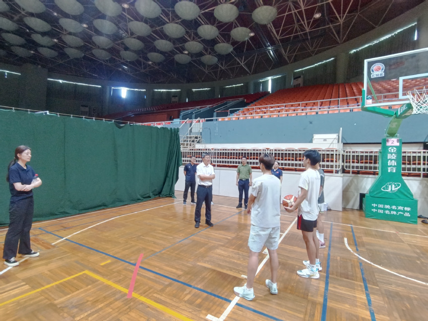 陈爱国观摩了学生训练情况,同参加训练的教练员、学生进行了亲切交谈,并提出了四点要求。一是高度重视此次比赛。江苏省体育教育专业基本功大赛是省教育厅主办的省级教育教学类权威赛事,对于提升师范生的专业技能与教学能力,促进未来职业发展具有重要意义,希望大家全力以赴准备。二是强化科学训练。在训练备战过程中,教练员要详细研究比赛规则,精准对标赛事标准,明晰比赛项目的重点和难点,建立成熟的科学训练体系。三是加强比赛保障。学院要主动加强与相关职能部门和兄弟院校互动,成立比赛保障组,积极申请专用训练场地、对接校外专家,为备赛团队提供全周期、精细化保障。四是力争优异成绩。备战师生应确立“优异成绩”目标,总结以往比赛中的经验,分析优势和差距,将差距转化为具体改进任务,将训练成果转化为优异成绩。