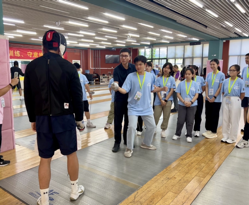 体育项目体验环节将研学活动推向高潮。击剑场上,香港青年在专业教练指导下体验“格斗中的芭蕾”,感受优雅与力量并存的运动魅力;乒乓球台前,两地青年以球会友,多板攻防中笑声与喝彩声交织。随后,技巧队带来高难度翻腾与抛接表演,将力量与美感展现得淋漓尽致,赢得了阵阵掌声。