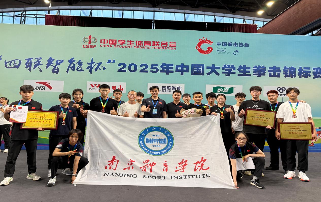 7月18日至25日,由中国学生体育联合会、中国拳击协会联合主办的2025年中国大学生拳击锦标赛在西安外国语大学隆重举行。本次比赛汇聚了来自全国100所高校的600余名运动员和教练员。南京体育学院代表队由运动训练学院拳击专项师生组成,运动训练学院院长赵琦担任领队,胥锐、苗绿峰和刘志强三位老师担任教练。在为期六天的赛程中,队员们充分展现了扎实的技术功底和顽强拼搏的体育精神,面对各路强劲对手毫不畏惧,在赛场上敢打敢拼、奋勇争先,最终以3金6银2铜及2个第五名的优异成绩收官,男子、女子团体总分均位列第二,同时荣获 “体育道德风尚奖” 和 “最佳组织奖”,胥锐老师获评“优秀教练员”。