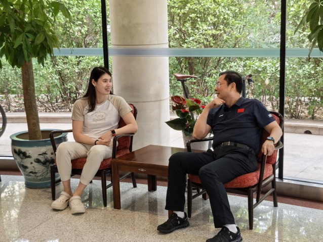 校长吴兵成与张雨霏亲切交谈