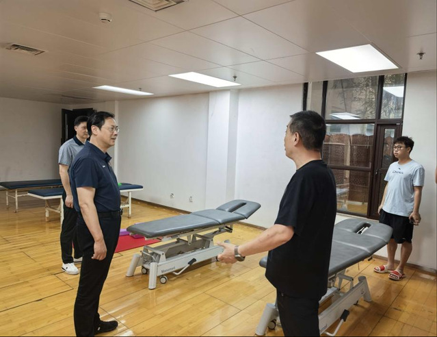 6月26日,党委副书记、校长吴兵成带领游泳学院院长王伟新、游泳队负责人前往北京看望慰问正在抓紧备战十五届全运会的我校国家游泳队运动员、教练员和科医保障团队。
