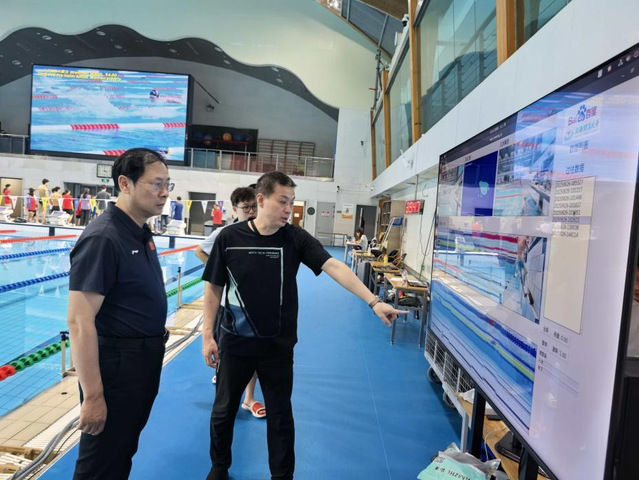 吴兵成一行来到游泳项目训练场地,观摩了国家游泳队训练情况,参观了国家游泳队的科研设备室、医疗康复室等,并与国家体育总局游泳运动管理中心有关领导、国家游泳队主教练崔登荣进行了沟通交流,详细了解了国家队的科医保障和运动员的备战情况。随后,吴兵成与我校游泳运动员张雨霏,教练员黄光裕以及科医保障人员进行了亲切交谈,仔细询问了他们近期的训练情况、身体状况、医疗保障、困难和需求等,并勉励他们咬定目标、全力以赴,力争在即将到来的世锦赛中取得优异成绩,为十五届全运会争金夺冠打下坚实基础,为江苏竞技体育做出新的更大贡献。