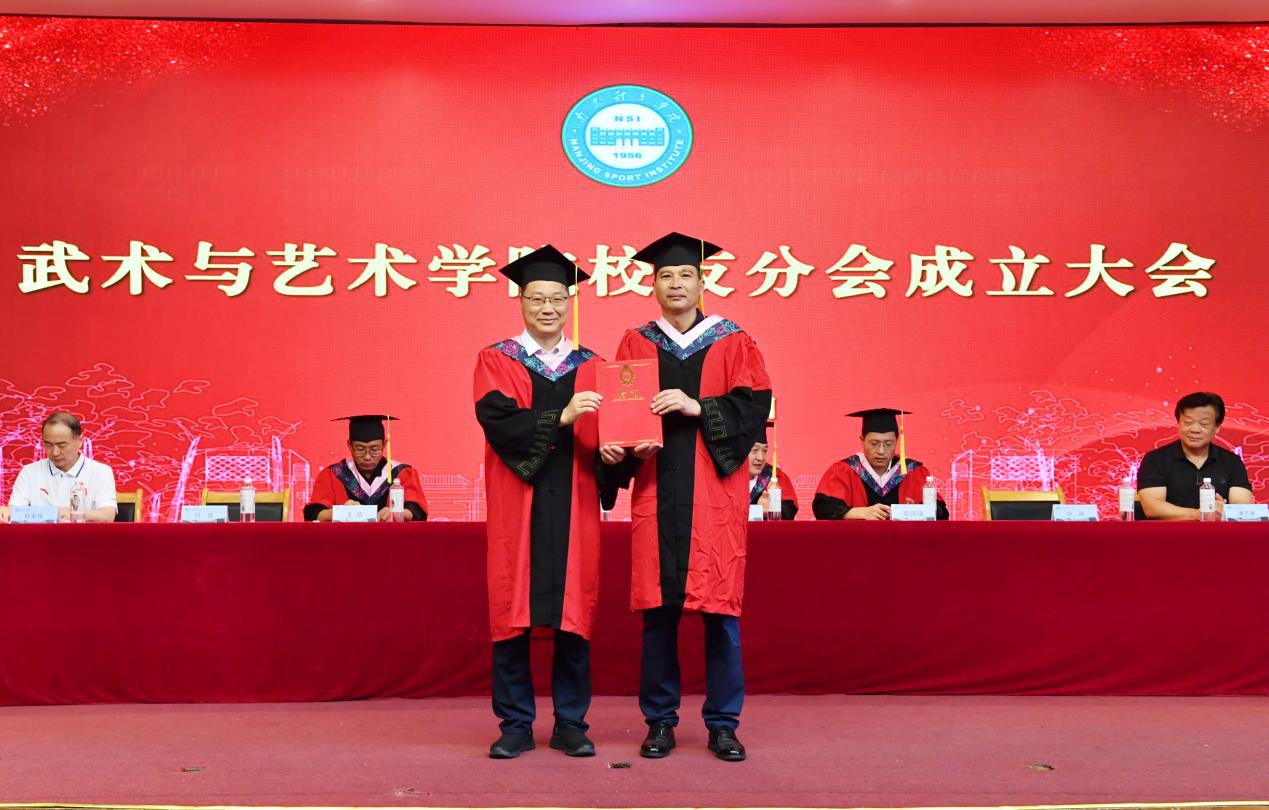 在全体毕业生即将带着母校的烙印奔赴山海之际,具有非凡意义的庄严时刻在学位授予仪式中绽放。党委常委、副校长陈爱国郑重宣读关于成立武术与艺术学院校友分会的批复,字字铿锵,点燃现场期待。陈爱国与张明一同缓缓揭开红绸,“武术与艺术学院校友分会”牌匾在众人瞩目中闪耀亮相,熠熠光芒照亮了毕业生们对未来联结的憧憬。紧接着,聘书颁发环节有序展开。陈爱国将校友分会首任会长的聘书郑重交到张明手中,这传递的不仅是一份委任,更是对凝聚校友力量的深切期许。而张明随后依次为分会副会长、理事、秘书长颁发聘书,每一次递出的聘书,都似在编织一张细密的网络,搭建起校友与母校间温暖的情感桥梁。自此,无论未来毕业生们身处天南海北,除了知识传承这条精神脉络,更有了一条永不断裂的情感纽带。这份超越知识传递的深厚联结,为这场庄重的学位授予仪式,增添了一抹柔暖动人的温情注脚,让离别的时刻更显温馨与不舍。