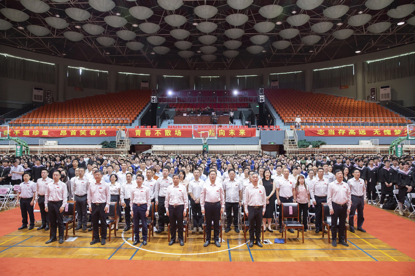 “钟山巍巍,是你坚挺的脊梁。灵谷深深,是你宽广的胸膛。……”最后,现场师生齐唱《南体之歌》。在嘹亮的歌声中,毕业典礼圆满结束。