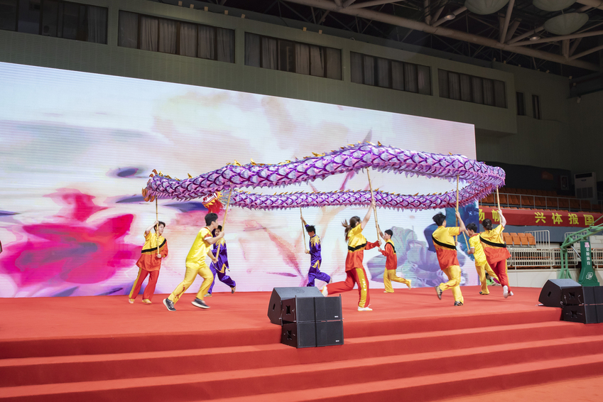 毕业典礼正式开始前,现场举行了暖场演出。舞龙舞狮《龙腾狮跃》、舞蹈《奔跑的青春》、技巧《筑梦》和歌曲《栀子花开》《错位时空》《春风南体》《奔跑》……七个节目精彩纷呈,气氛瞬间燃爆整个体育馆,青春与浪漫在此刻具象化。现场师生不时爆发出阵阵欢呼声和掌声。