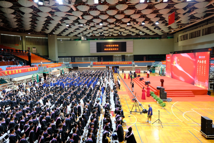 随着全场师生肃立、齐唱国歌,南体2025年毕业典礼正式拉开序幕。