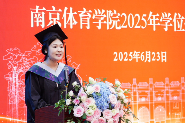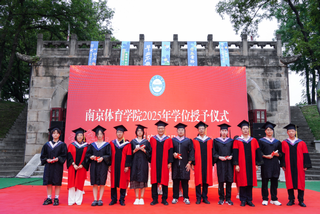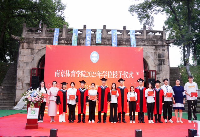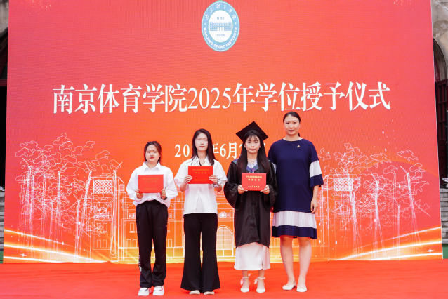 学位授予仪式在庄严的国歌声中拉开帷幕。仪式上分别宣读了《南京体育学院关于准予运动健康学院侍梦雅等106名2025届本科生毕业的决定》《南京体育学院关于授予运动健康学院侍梦雅等106名2025届本科生学士学位的决定》《关于授予王嘉琪等29名同学2025届“优秀毕业生”荣誉称号的决定》等文件。与会领导们共同为毕业生代表颁发毕业证书,许安琪依次为3名校级“优秀毕业生”颁发荣誉证书。