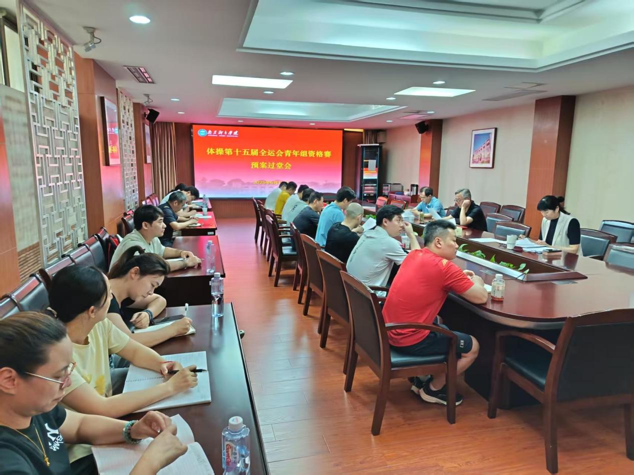 6月18日上午,体操学院在办公楼301会议室召开体操队第十五届全运会青年组预赛方案过堂会。副校长刘健出席会议并听取了体操队情况汇报。训练处、体操学院、体操队管理干部以及参赛教练员、科医保障团队出席会议。