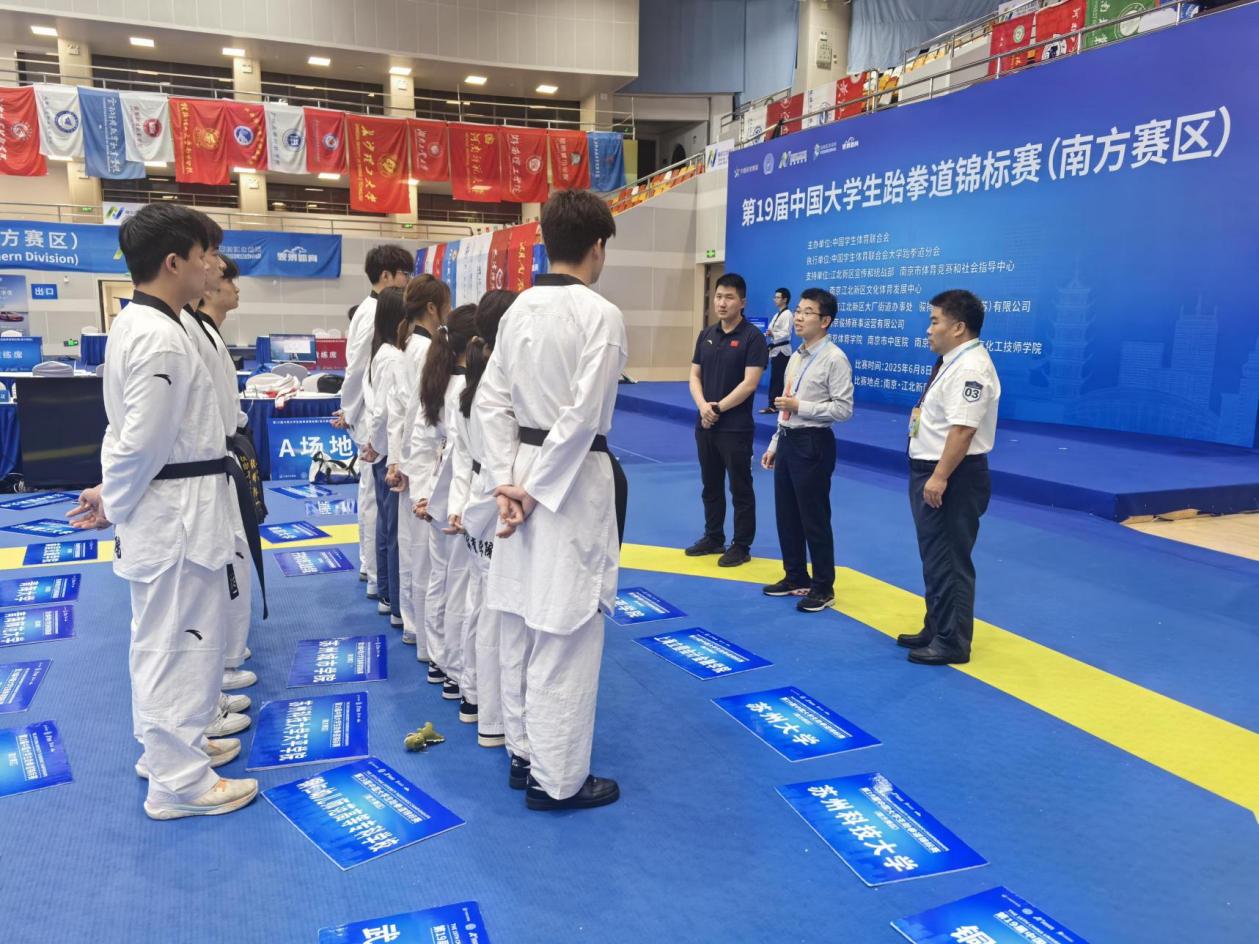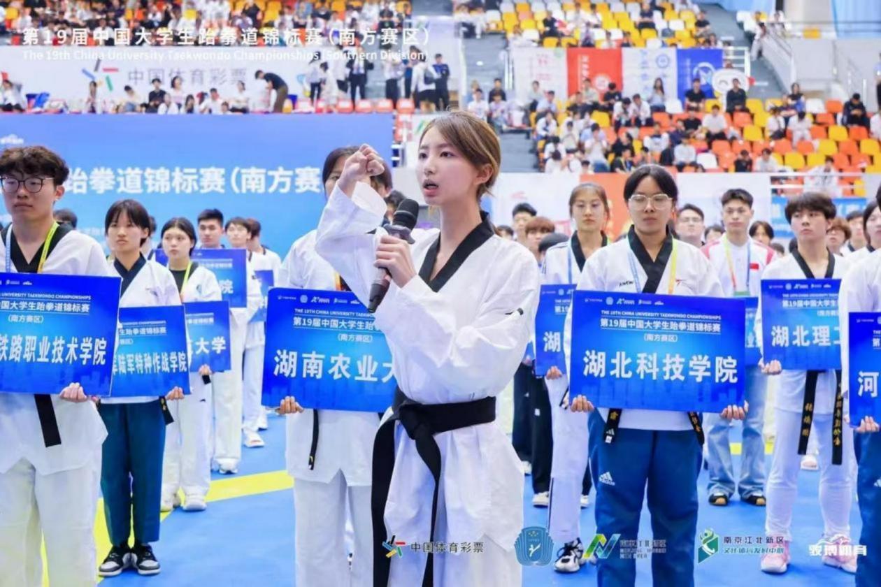 2025年6月9日至13日,第19届中国大学生跆拳道锦标赛(南方赛区)在南京市江北新区大厂体育馆举行。本届赛事由中国大学生体育协会主办,吸引了来自清华大学、北京大学、南京大学等232所高校的近1800名运动员与教练员同场竞技,规模创历届之最。南京体育学院代表队在赛事中表现出色,斩获2金1银3铜及3个第五名,同时荣获“体育道德风尚奖”和“突出贡献奖”。校党委副书记兰亚明出席开幕式并慰问运动员,我校学子钟承含作为运动员代表宣誓。