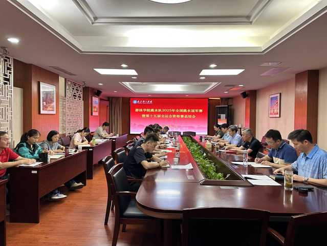 6月11日上午,游泳学院跳水队在行政办公楼301会议室召开2025年全国跳水冠军赛暨第十五届全运会资格赛总结会。校党委书记刘红明,党委常委、副校长刘健,党委常委、宣传部部长、统战部部长许立俊出席会议。训练处有关负责同志、游泳学院党总支书记骆晓娟、跳水队管理干部、全体教练员、科医保障人员和运动员代表参加会议。会议由游泳学院院长王伟新主持。