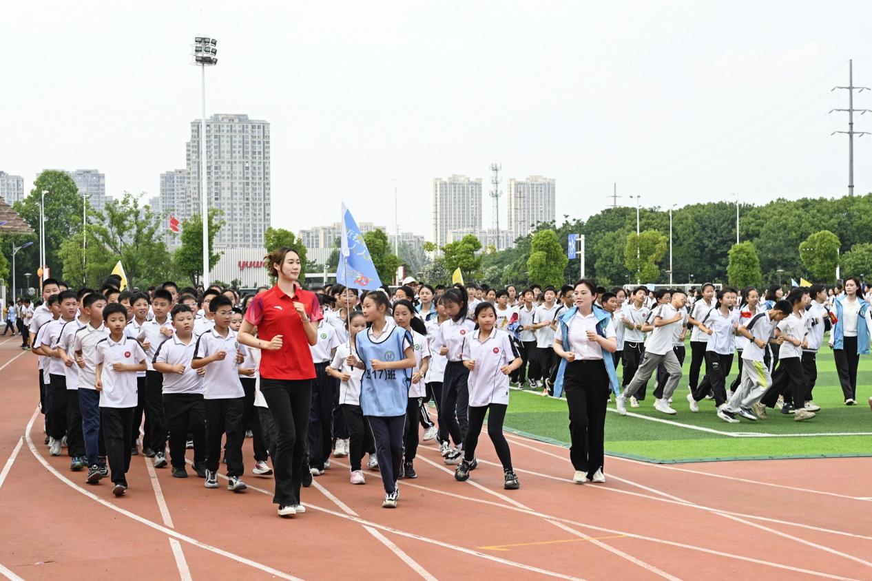 花样游泳奥运冠军王赐月为大课间活动领跑