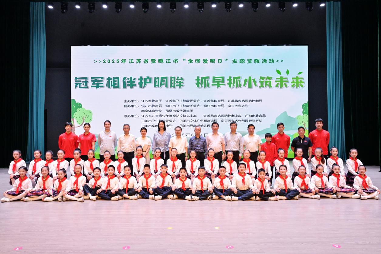 6月4日下午,由省教育厅、省卫生健康委员会、省体育局、省疾病预防控制局主办,南京体育学院等单位协办的2025年江苏省暨镇江市“全国爱眼日”主题宣教活动在丹阳举行。活动以“冠军相伴护明眸,抓早抓小筑未来”为主题,关注全省儿童青少年普遍的眼健康。省教育厅二级巡视员李金泉,省卫生健康委员会副主任,省疾控局局长周明浩,省体育局副局长肖爱华,镇江市人民政府副市长武鸣,南京体育学院党委常委、副校长陈爱国,奥运冠军黄旭、许安琪、王赐月,世界冠军张洺赫、马学锋、施俊杰、史经纬出席主题宣教活动,江苏省、镇江市、丹阳市、南京体育学院相关部门负责人,部分中小学幼儿园师生和家长代表出席活动。活动全程采取网络直播形式向全社会播出。