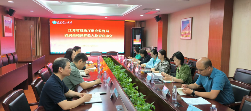 6月3日上午,我校在行政办公楼301会议室召开省属高校预算收入检查启动会,财政厅财会监督局局长李蔚、副局长赵娜,财政部江苏监管局一级调研员顾奋英,财政厅教科文处三级调研员路遥蕴,体育局经济处处长王峰等出席会议。校党委常委、副校长鲍勤出席会议并讲话,计划财务处处长丁锴主持会议。