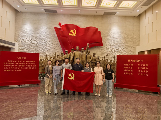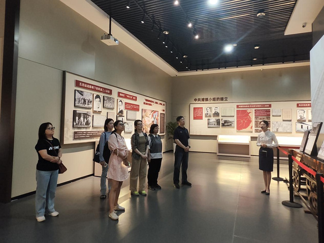 随后,一行人徒步前往江北新区红色广场,并参观江北新区红色文化展陈馆。在讲解员的引导下,党员教师们依次参观了“两浦星火革命洪流”“疾风劲草北岸屹立”“救亡烽火坚持抗战”“激战三浦解放南京”“品重柱石王荷波”等四大主题展厅。一件件饱经沧桑的文物、一组组珍贵历史影像,生动再现了南京江北地区党组织从星火初燃到燎原之势的奋斗历程。参观后,张亚军结合王荷波“品重柱石”事迹开展现场教学,剖析早期共产党人的清廉风骨,结合《中国共产党纪律处分条例》《新时代高校教师职业行为十项准则》学习,研讨思政课教学中廉洁文化教育。