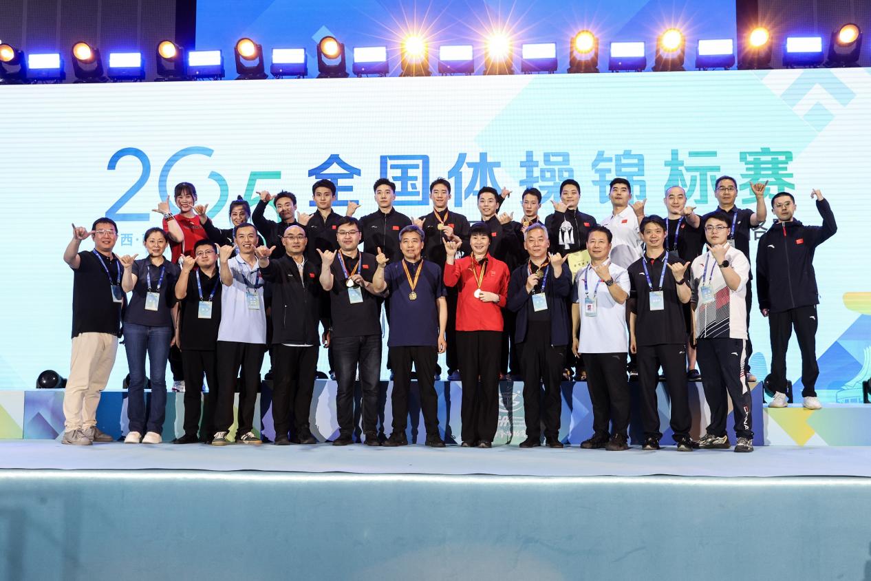 校党委书记刘红明到场观摩比赛并为冠军队伍颁奖。赛后刘红明书记向体操队运动员、教练员以及科医保障团队表达了祝贺。刘红明书记表示,体操队夺得了男团六连冠可喜可贺,实现了我校今年国内一类赛的开门红。此次比赛,体操队参赛预案准备充分,赛场上队员发挥稳定,教练员应变灵活,科医团队保障给力,为我们夺得这枚宝贵的金牌提供了坚强的支撑。在省体育局的坚强领导和大力支持下,南京体育学院高度重视竞技体育发展,今年正值第十五届全运会之年,希望体操队继承发扬不畏艰难、勇攀高峰的奋斗传统,踏踏实实备战,力争在全运会赛场上再创新的佳绩,为江苏省、为南京体育学院竞技体育事业发展做出更大的贡献。