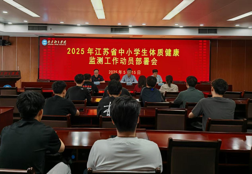5月15日下午,我校于行政楼201会议室召开2025年江苏省中小学生体质健康监测工作动员部署会。党委常委、副校长陈爱国,运动健康学院院长汤强出席会议。全体参与体质健康监测工作的师生参加会议。会议由体育科学研究院副院长孙强主持。