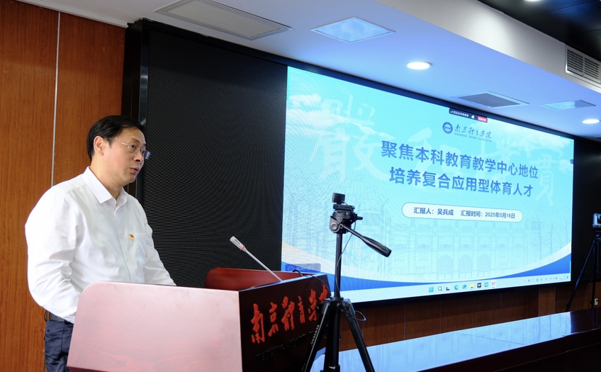 吴兵成以《聚焦本科教育教学中心地位 培养复合应用型体育人才》为题,从学校办学历史、基本情况、办学特色和自评自建情况与成效四个方面作了补充汇报。他表示,本科教育教学审核评估意义重大,它是对学校教育教学质量的一次全面体检,不仅关系到学校的声誉和发展,更关乎每一位学生的成长与未来。学校将深刻领会“以评促建、以评促改、以评促管、评建结合、重在建设”的方针,将评估作为推动学校内涵式发展的重要契机,以坚定的决心和积极的行动,按照专家组的工作部署全力以赴做好各项工作,认真听取专家意见,全面整改存在问题,推动我校本科教育教学工作再上新台阶,努力为教育强国、体育强国、健康中国建设和中国式现代化江苏新实践作出新的更大贡献。