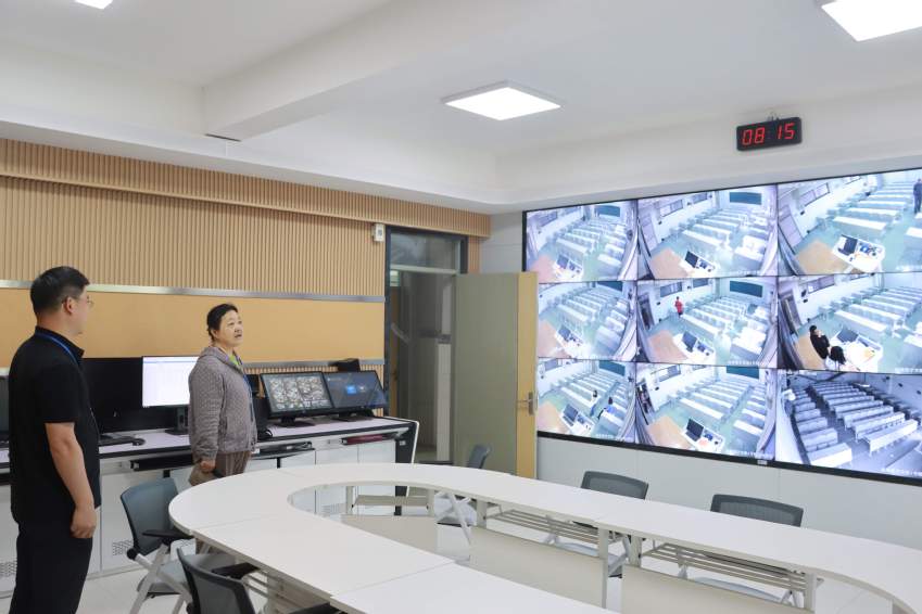 考试当天,各功能组人员准时到岗,各司其职,组织考试工作。校纪委(派驻监察专员办公室)工作人员全程监督,确保考试公平公正;考场巡考组开展考场秩序巡查和考场布置监督;安保工作组严格核实参考人员身份信息,维持校内交通及现场秩序;考务工作组召开全体监考人员的考务会议,对考试流程、监考要求、试卷分发及回收等工作节点强调具体要求;保障工作组及时提供考试物品、饮用水、标准化考场监控、医疗保障等。