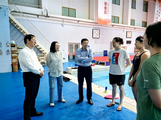 校领导一行先后赴国家游泳队、花样游泳队、跳水队,与国家体育总局游泳运动管理中心有关领导、张雨霏国家队主带教练崔登荣和我校知名校友、国家跳水队教练陈若琳进行了沟通交流,深入了解我校运动员的备战情况。随后,校领导与我校游泳运动员张雨霏、花样游泳运动员章小优以及科医保障人员进行了亲切交谈,仔细询问了他们近期的训练备战情况、身体状况、医疗保障、困难和需求等,并鼓励他们咬定目标、坚定信心,进一步提升竞技实力水平,在即将到来的十五届全运会上争创佳绩、再立新功,为省、为南京体育学院争光添彩。