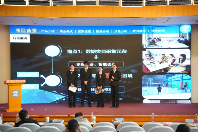 经院级比赛、校赛初赛,共有12个项目进入校赛决赛,主赛道8个项目,红旅赛道4个项目。参赛项目涵盖智能运动装备研发、体卫融合健康干预、非遗体育文化传承等创新领域,各参赛团队高度重视、精心准备,通过产品介绍、市场分析、商业模式等模块进行系统展示。答辩环节中,评委围绕技术壁垒突破、成果转化路径等关键问题展开问辩,现场秩序井然、氛围热烈。