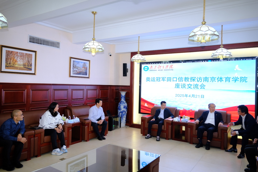 4月21日下午,日本游泳奥运冠军、日本医疗法人社团葵会创新研究所所长、医疗创生大学常务理事、特任教授田口信教和日本农友社股份公司顾问福本和泰来我校探访交流。南京体育学院党委副书记兰亚明、党委常委、宣传部部长、统战部部长许立俊、游泳学院党总支书记骆晓娟、体育科学研究院院长秦学林和国际交流与合作处处长张珏参加调研交流。