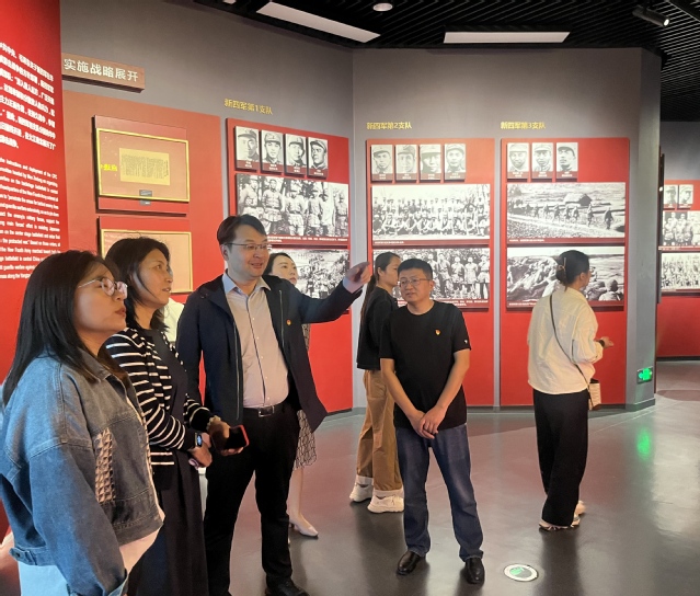 在纪念馆工作人员的引导下,大家有序进入馆内,依次参观了序厅、主展厅和传承厅。一踏入序厅,一幅幅巨大的历史画卷映入眼帘,仿佛将人们带回了那个烽火连天的年代。参观过程中,支部党员们被一张张珍贵的历史照片、一件件饱经沧桑的文物、一个个逼真的模拟实景深深吸引。刘海宁书记为大家深情讲述了新四军在抗日战争中浴血奋战、英勇斗争的光辉历史主题微党课,全体党员干部深刻感悟到了新四军“铁的信念、铁的担当、铁的作风、铁的纪律”的铁军精神。