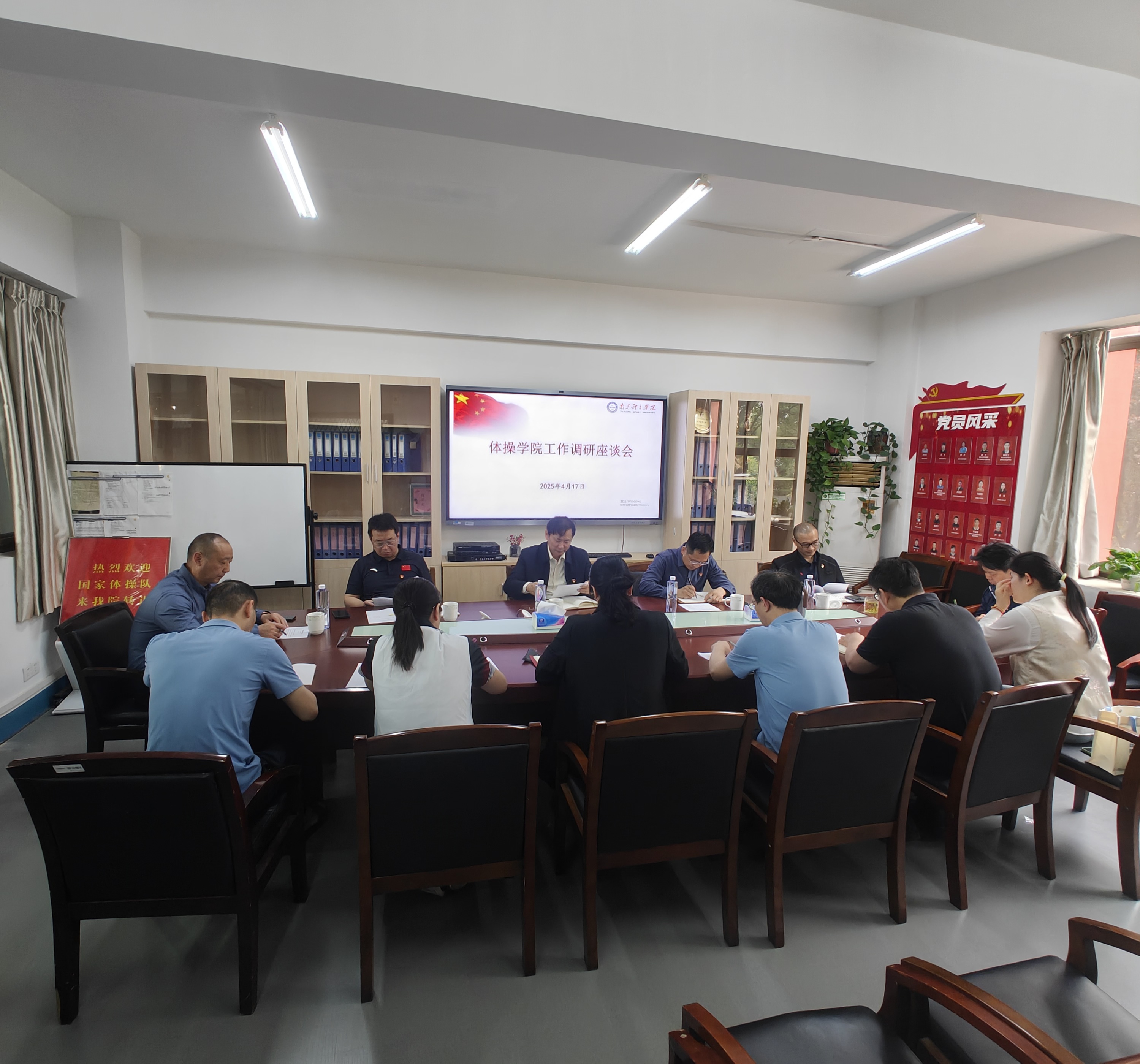 4月17日上午,党委副书记、校长吴兵成带领党政办、训练处、后勤处、竞技体育研究院等部门负责同志到体操学院调研第十五届全运会备战工作。体操学院全体管理干部出席会议。