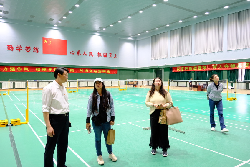 中国体育报业总社记者一行在羽毛球馆考察调研