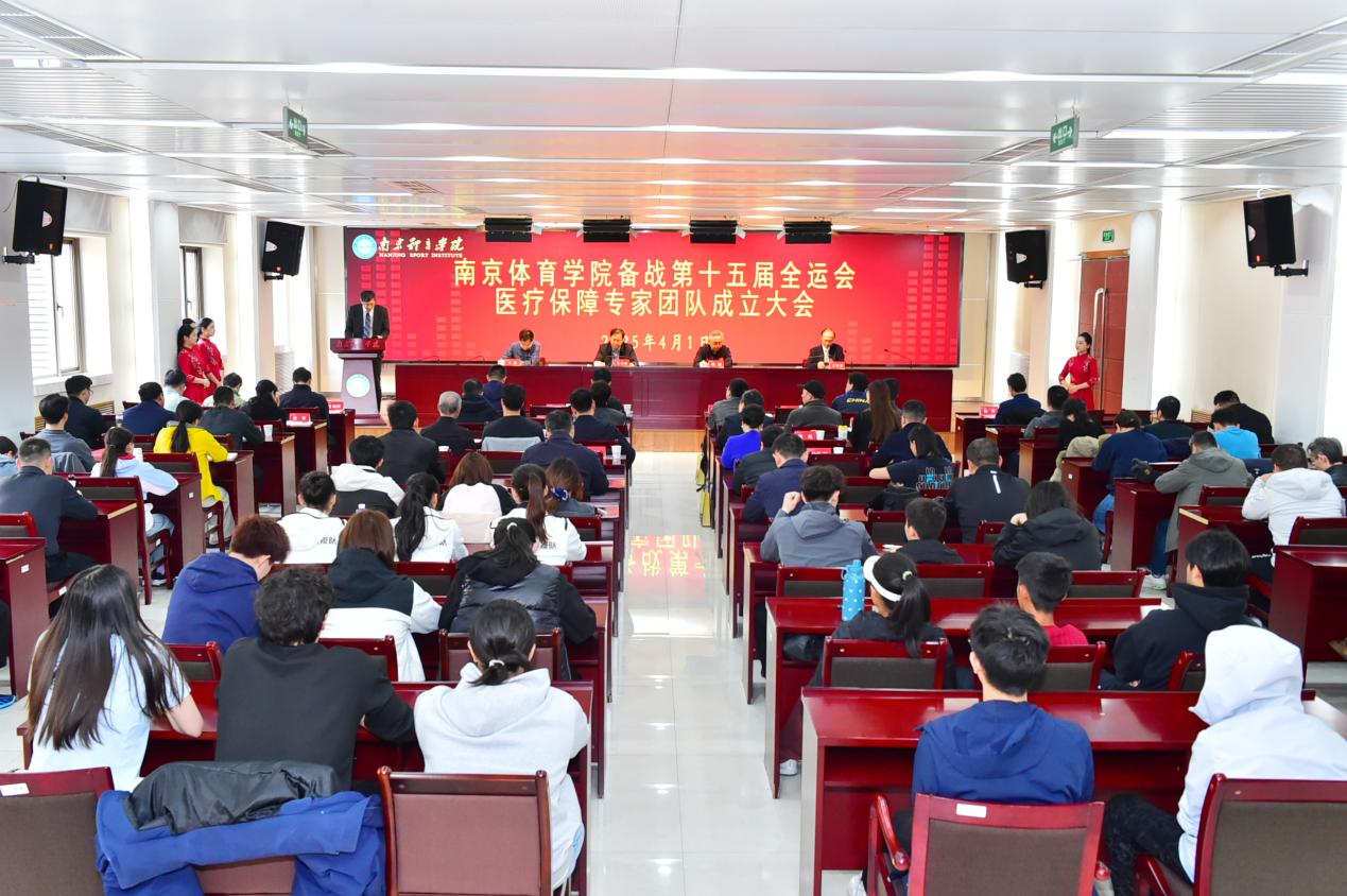 4月1日下午,南京体育学院第十五届全运会医疗保障专家团队成立大会在行政楼101会议室举行。校党委副书记、校长吴兵成,校党委常委、副校长刘健,校党委常委、党政办主任王猛,备战第十五届全运会医疗保障受聘专家团队成员,训练处、各竞技体育学院、运动队负责人,运动康复医院全体人员,部分运动员代表出席了会议,运动康复医院院长王家祥主持会议。