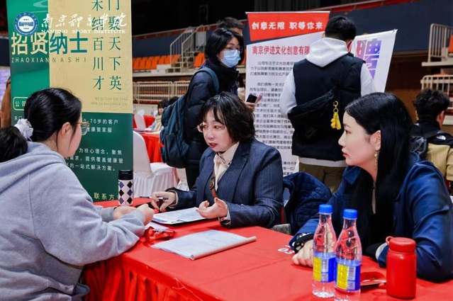 在招聘会现场,学生们满怀热情参与活动,手持精心准备好的自荐书和简历,积极与用人单位交流。本次校园招聘活动在充分开展现场招聘的基础上,还采用了线上线下相结合的方式进行。在企业报名阶段,毕业生即可通过“南京体育学院毕业生就业信息网”入口提前查阅来校企业基本情况、职位要求、薪资待遇等信息,并线上投递简历。