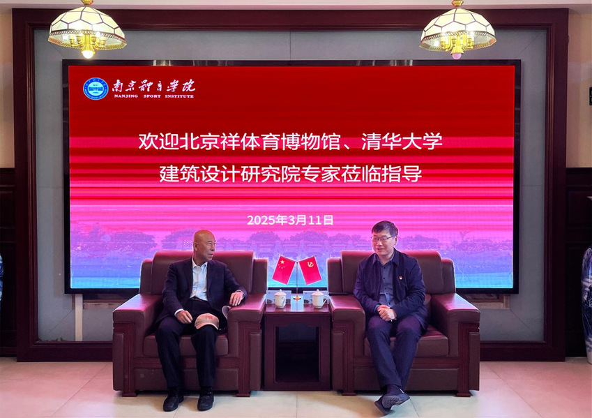 陈爱国代表学校对李祥、殷丽娜一行的到来表示热烈欢迎,他强调,校党委高度重视体育博物馆建设和体育文化事业的发展。南京体育学院建立在中央体育场旧址之上,承继了中国近代百年体育历史文脉,建设中国近代体育博物馆是历史的必然,是时代赋予的责任,是推动体育文化事业繁荣的重要路径。陈爱国进一步指出,中国近代体育博物馆的建设工作也是筹备学校70周年校庆的重要组成部分,我们要坚定决心和信心,早日统筹谋划,及时完成体育博物馆的布展思路、方案设计、功能分区、经费预算等具体工作事项,切实有效推进中国近代体育博物馆建设进程,并恳请北京祥体育博物馆、清华大学建筑设计研究所等单位的专家们不吝赐教,为我校中国近代体育博物馆的建设贡献宝贵的智慧与力量。