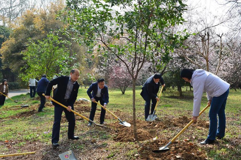 为深入贯彻落实党的二十大精神,践行“绿水青山就是金山银山”的生态发展理念,进一步深化党建引领作用,凝聚共建合力,3月11日,省体育局第五党支部、省体育产业中心(基金会)支部与南京体育学院体育产业休闲学院党总支联合开展党建共建及义务植树活动。校党委副书记兰亚明、省体育局第五党支部书记、经济处处长王峰,南京体育学院党委常委、组织部部长殷怀刚、省体育产业指导中心支部书记、副主任(主持工作)吴翔,体育产业与休闲学院领导班子,省体育局经济处、省体育产业指导中心(省发展体育基金会)及体育产业与休闲学院有关负责同志参加了此次活动。
