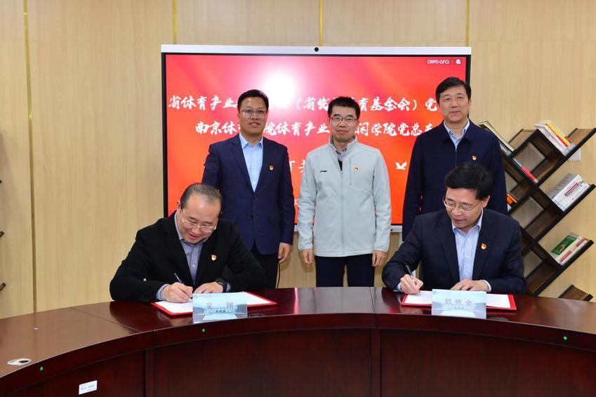 会上,在校党委副书记兰亚明、省体育局第五党支部书记、经济处处长王峰,南京体育学院党委常委、组织部部长殷怀刚三位领导的共同见证下,体育产业与休闲学院党总支副书记、院长郭修金与省体育产业指导中心支部书记、副主任(主持工作)吴翔共同签署了《党支部共建协议》。签约仪式后,与会人员就进一步深化合作进行了研讨。